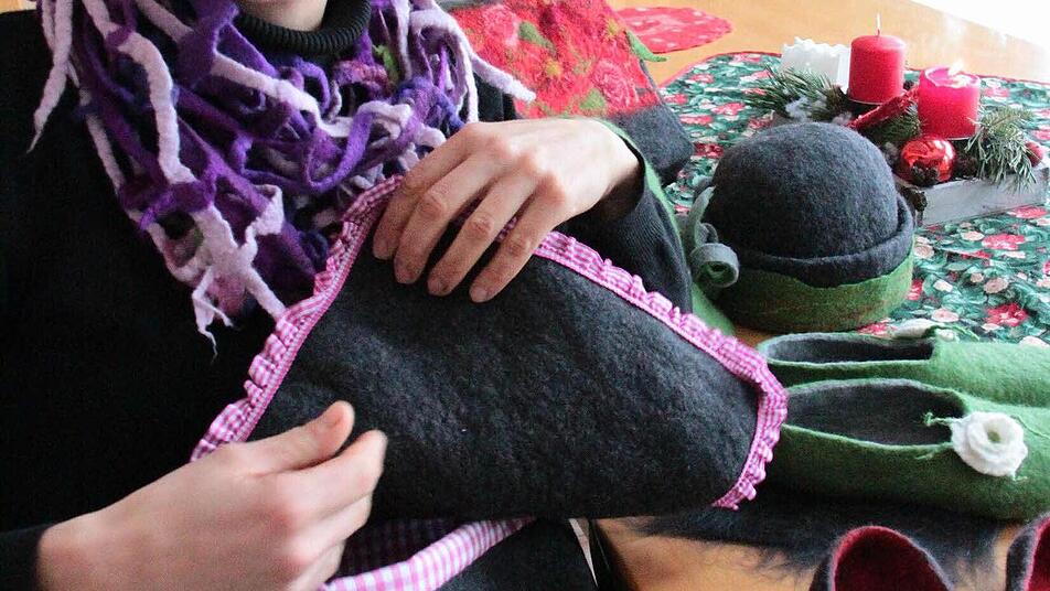 So funktioniert das Handwerk von Christine Kraus aus Kirchehrenbach: Wolle verwandelt sich in Lampenschirme oder Pantoffeln.