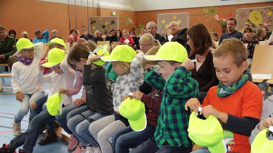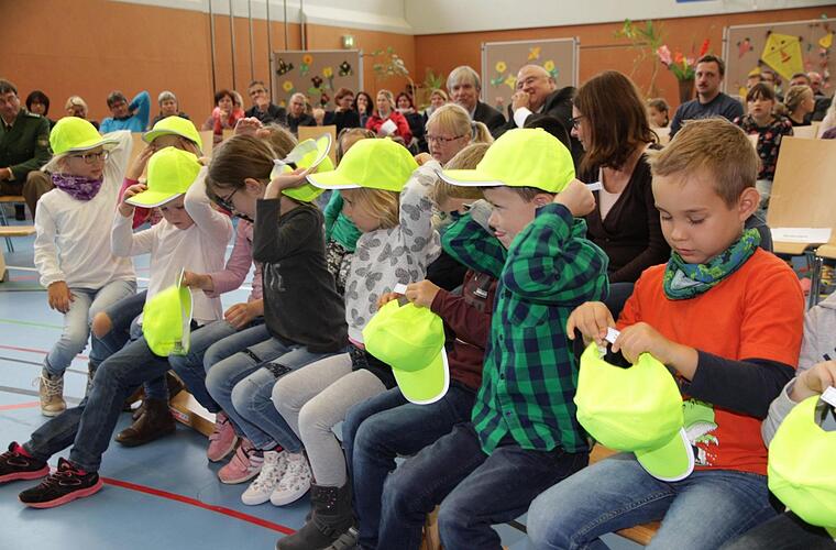 "Völlige Sicherheit wird es nicht geben, doch durch unsere gemeinsamen Anstrengungen schaffen wir es , die Verkehrswelt für unsere Kinder sicherer zu machen", so Schulamtsdirektor Ulrich Löhr. Am Ende des offiziellen Teils der Veranstaltung, der von verschiedenen Klassen der Grund- und Mittelschule Hallerndorf musikalisch umrahmt wurde, erhielten die Erstklässler von der Sparkasse Forchheim noch gelbe Mützen mit reflektierenden Streifen. Das soll im Straßenverkehr ihre Sichtbarkeit erhöhen.