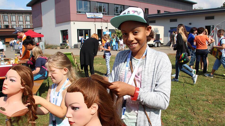 In Forchheims Miniatur-Version wird nicht mit dem Euro bezahlt, sondern mit "Quaks". Vor dem Friseur-Zelt stehen die Mädchen Schlange, hauptsächlich um selbst Geld zu verdienen. Lara Tuomie von der Friseurschule Meininghaus sagt, dass die Kinder für 30 Minuten Frisierarbeit einen Stempel bekommen: "Der ist drei Quaks wert." Immer wieder hilft sie den Mädchen, die Puppen zu stylen und schmunzelt: "So habe ich selbst angefangen."