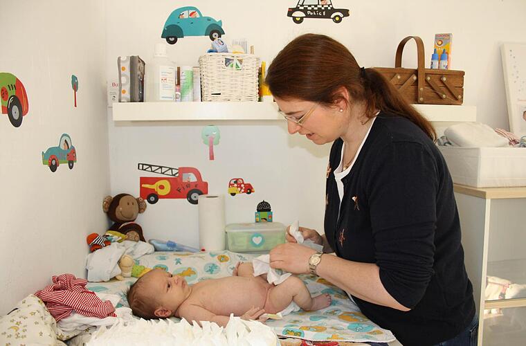 Wenn Denise Brüne zu Familie Roeger in Neunkirchen kommt, muss sie nicht klingeln: die Tür ist nur angelehnt. Schließlich kommt eine gute Bekannte zu Besuch. Die Hebamme hat Mutter Belinda Roeger schon vor und nach den Geburten von Maria (5) und Paul (3) betreut. Vor sechs Wochen ist Söhnchen Benedikt zur Welt gekommen, die Hebamme kommt zum Hausbesuch.