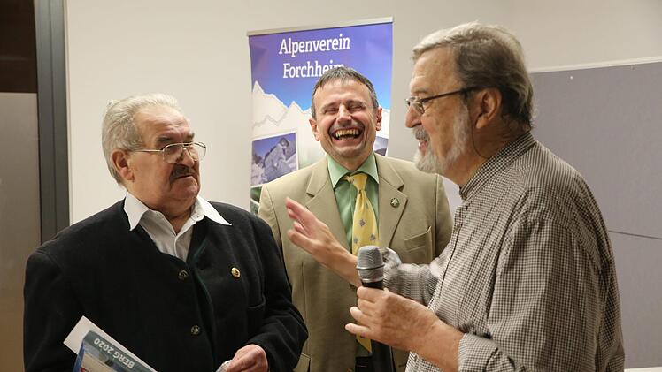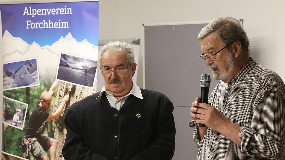 Der Ehrenvorsitzende Hansotto Neubauer nahm die Würdigung jedes Einzelnen der Jubilare vor. Die geehrten Mitglieder haben auf ihre Weise zum Leben der Sektion beigetragen. Besondere Verdienste haben sich die Spitzenbergsteiger Dirk Sachse (seit 25 Jahren DAV-Mitglied), Harald Merz und Andi Polster (beide 40 Jahre dabei) erworben, die als Fachübungsleiter hochklassige Kurse und Touren anbieten. Lobenswert auch der Einsatz von Denis Lieb im Bereich Jugend und von Hans-Karl Sponsel, der den Forchheimer Weg betreut.