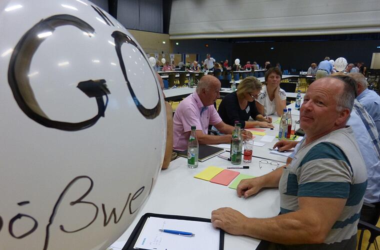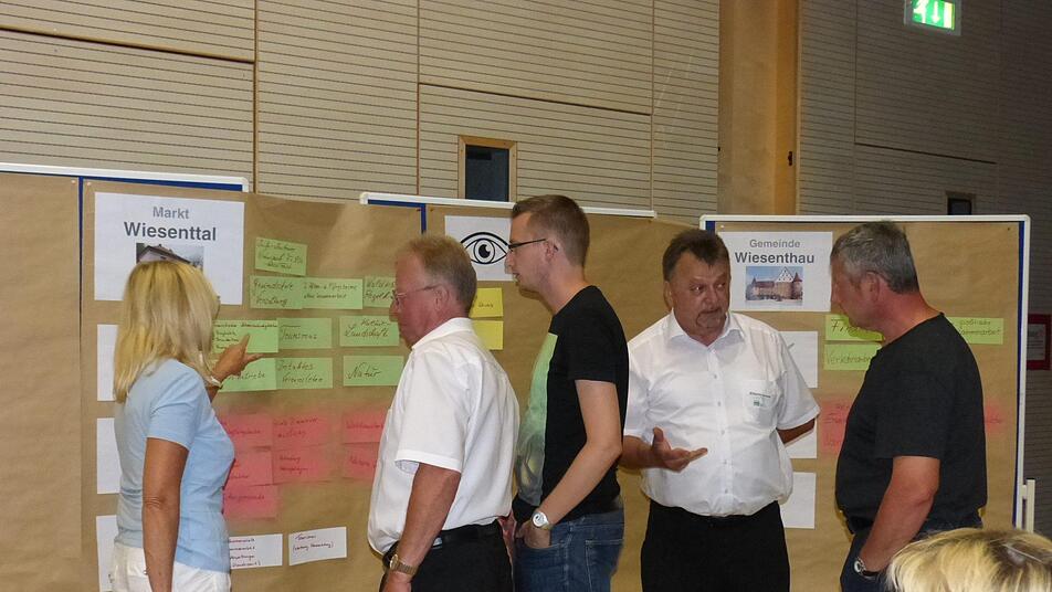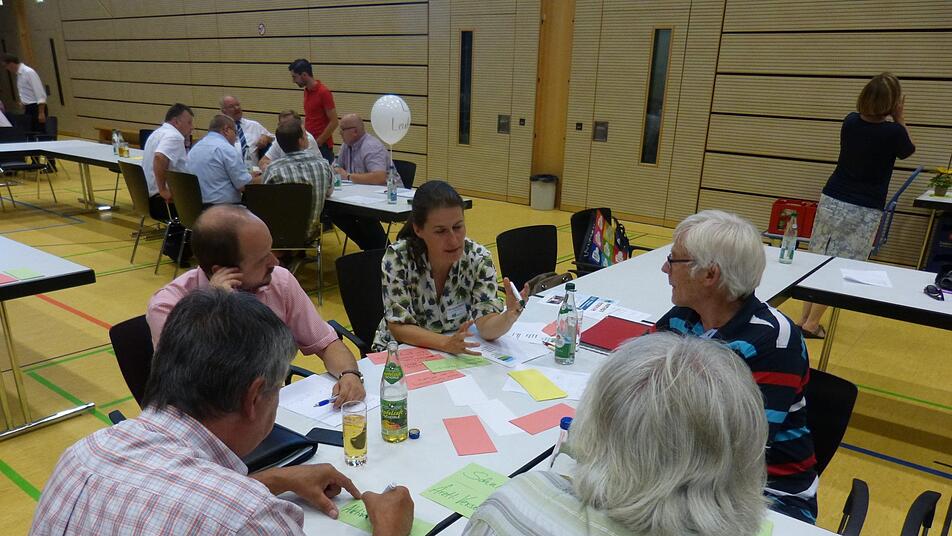 Die nach Gemeinden getrennt sitzenden Räte sammelten Infos und hängten diese an die Moderationswand ihrer Gemeinde. Anschließend trug ein Vertreter die Ergebnisse kurz vor. Diese werden von den Büros zusammengefasst und im Herbst präsentiert. Nach Interviews mit den Bürgermeistern im Vorfeld hatten die Büros die Schwerpunkte Zukunft der Vereine, Jugend- und Seniorenpolitik, Tourismus, Bauland, Nahverkehr, Landwirtschaft und Naturschutz erarbeitet, die auch in dieser Befragung thematisiert wurden.