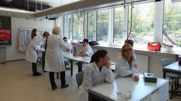 Dafür gleicht nun jeder Fachraum einem modernen Labor. Wie dort üblich hatten sich bei der Feier auch drei Schüler weiße Laborkittel übergeworfen. Sie hielten Reagenzgläser mit Flüssigkeiten in der Hand, unter Aufsicht ihrer Chemielehrerin Albina Hopp.