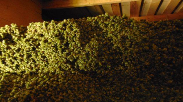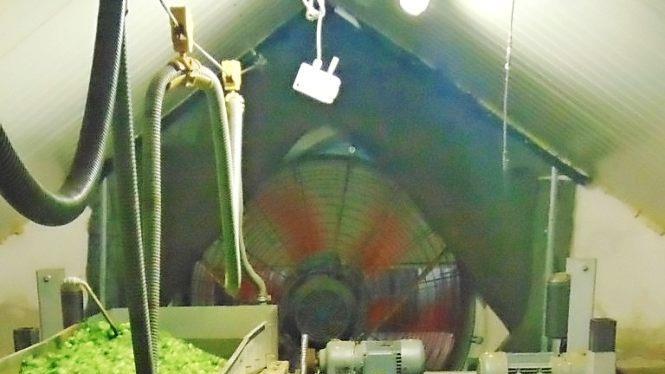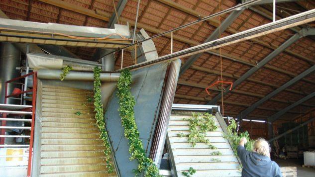 Von den anfänglichen 80 bis 100 Prozent Feuchtigkeit, die ein Hopfen bei der Ernte hat, bleibt nach der Trocknung eine Restfeuchte von zehn bis 15 Prozent. 24 Stunden dauert es, die Menge von rund einem Hektar zu trocknen. Eine Ladung Hopfen bleibt drei bis vier Stunden in der Trocknung.