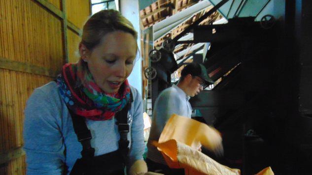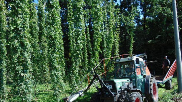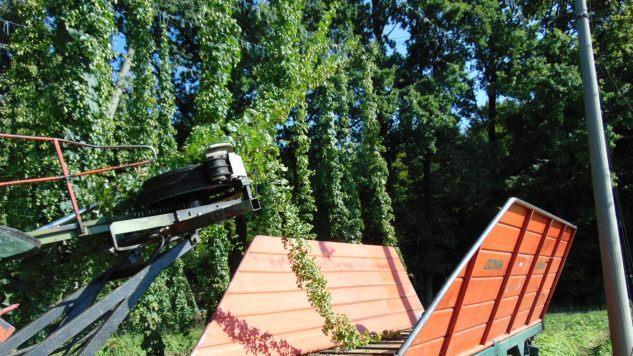 Dort steht Wislaw, eine Saisonarbeiterin, und kontrolliert das, während ihre Kollegin Ala dem Traktor hinterherläuft und die alle Zelche und andere Hopfenüberbleibsel aufsammelt und auf den offenen Anhänger des Traktors wirft. In dem Anhänger befindet sich ein Kratzboden, was ein schonendes Abladen der Hopfenreben auf dem Hof der Familie Friedrich ermöglicht.