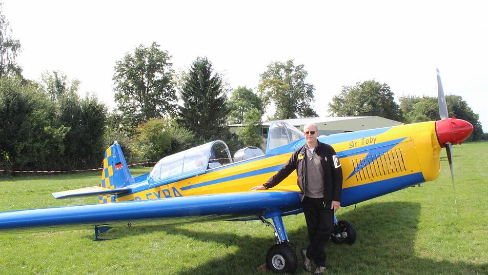 Zu den Flugzeugen, die auf dem "Hetzles Berg" stehen, gehört auch die in Gelb und Blau lackierte tschechische Kunstflugmaschine vom Typ ZLIN 526 F aus dem Jahre 1970. Das Flugzeug gehört dem 55-jährigen Karl-Heinz Ideler, der einst zu den besten deutschen Kunstfliegern gezählt hat.