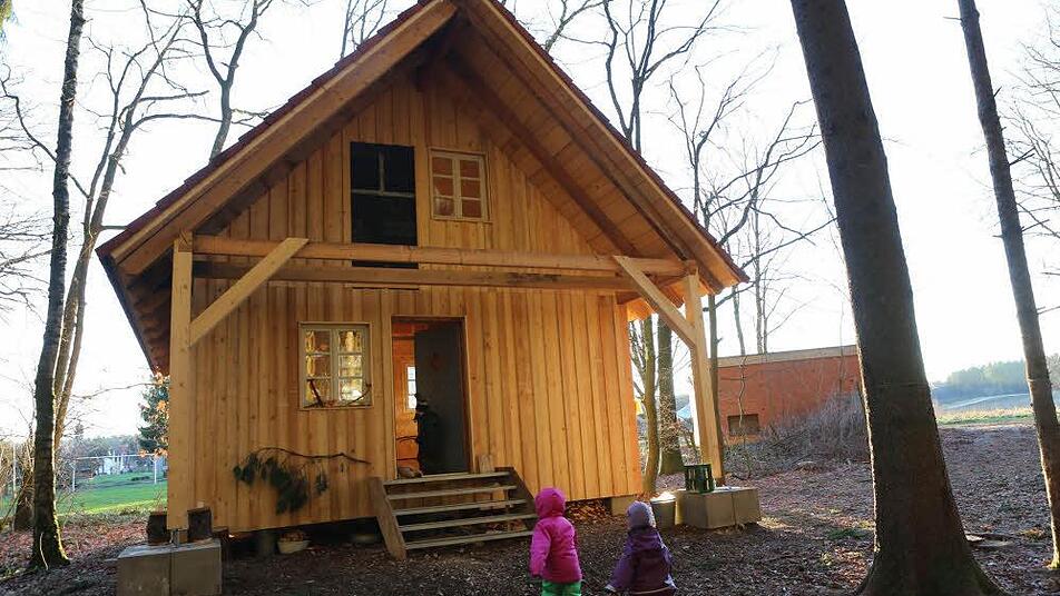 Das Häuschen wurde unter viel Mithilfe der Eltern und des Trägervereins der Waldstrolche - dem Waldkindergarten in Wiesenttal - errichtet. Heute aber bleibt die Hütte ungenutzt. Und nach der Pause herrscht nun die sogenannte Freispiel-Zeit. Hier sitzen die Kleinen zusammen und können basteln. Oder sie machen Rollenspiele.