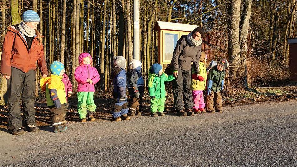 Die Pädagogin Lisa Sandner und die Erzieherin Manuela Trautner kümmern sich um die Kleinen. Zwischen 7.45 und 8.15 Uhr werden die Kinder von ihren Eltern gebracht - dick vermummt kommen die Jungen und Mädchen angesaust. Um 8.30 Uhr startet ihr Tag mit dem Morgenkreis. Alle sitzen auf Baumstämmen nebeneinander, singen Lieder und machen kleine Spiele. Heute ist Timo an der Reihe. Er geht durch die Reihen, zählt alle Kinder ab - prüft nach, ob die Gruppe komplett ist. Sogar einen Wetterbericht müssen die Waldstrolche abgeben.