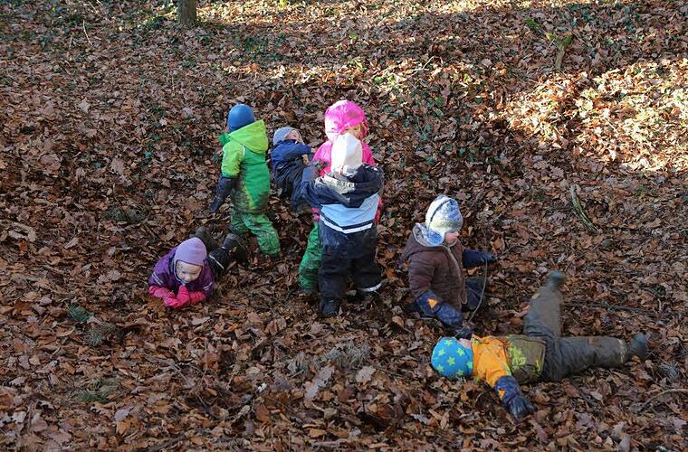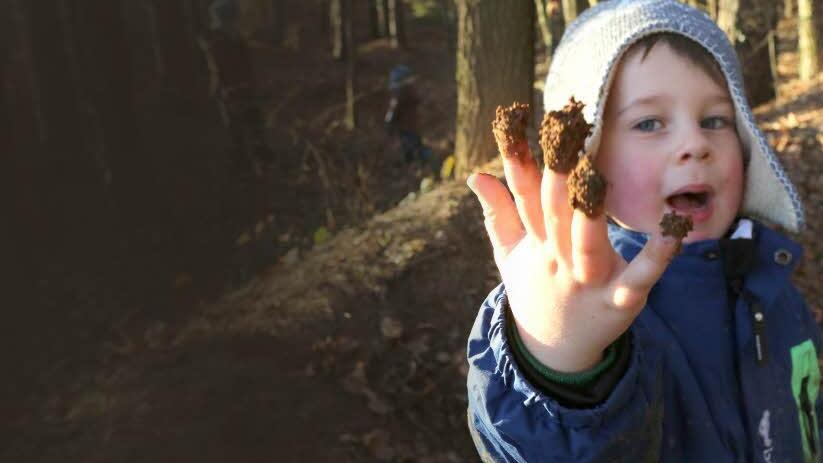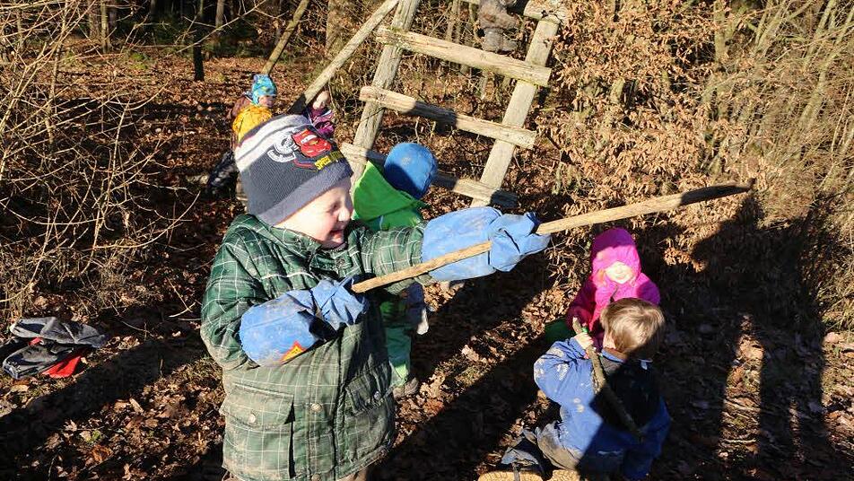 Eric (4) etwa findet immer Raritäten am Boden, mit denen sich toll spielen lässt. Da reicht schon ein einfacher Holzstock, den er dann aufhebt und als Angel benutzt. "Damit fange ich für mich und die anderen Fische, die wir zur Brotzeit essen können", erklärt der Junge keck.