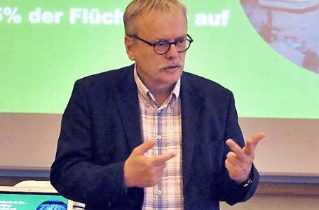 Der Grünen-Bundestagsabgeordnete Uwe Kekeritz sprach in Neunkirchen am Brand über die Hintergründe der Flüchtlingswelle.