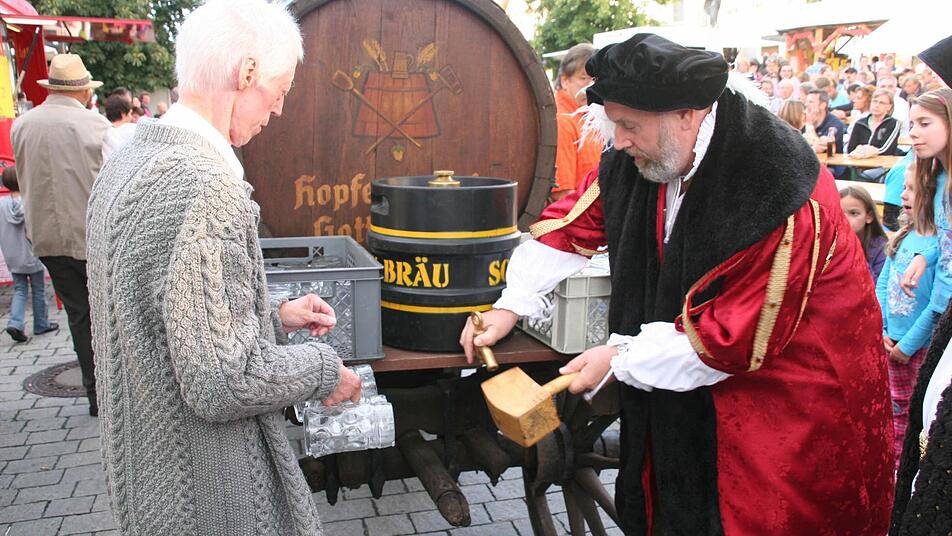 (Schwanenbräu), Manfred Schatz ("Zur Post") und das neu hinzugekommene Wirtsehepaar von "Bei Angelo" haben heuer den Preis für den Liter Festbier reduziert. Letztes Jahr hat er noch 6,50 Euro gekostet, jetzt müssen die Festbesucher nur noch sechs Euro dafür bezahlen.
