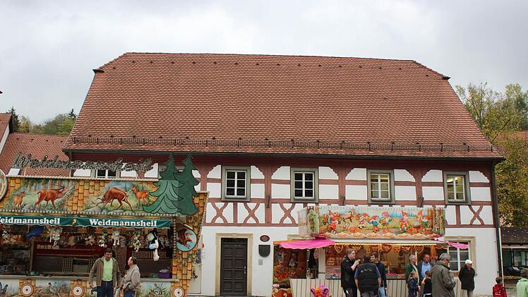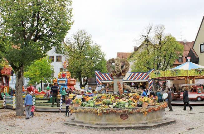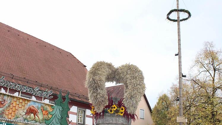Weithin sichtbar und den Altort um Längen überragend stand der Kerwabaum als Symbol der Heiligenstadter Kirchweih inmitten des Rummels. Der eindrucksvolle Baum rief Einheimische wie auch Gäste dazu auf, die urfränkische Kerwa rund um den zum Erntedank mit allerlei Feldfrüchten geschmückten Marktbrunnen zu besuchen.