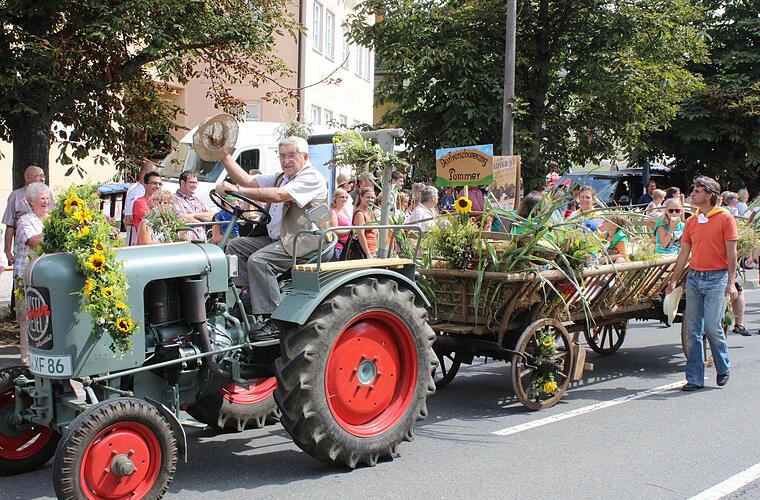Das lag auch daran, dass die teilnehmenden Vereine aus dem Gebiet der Großgemeinde und der Umgebung in ihren bunten Trachten, Kostümen und mit dem liebevoll geschmückten Zugwagen ein prächtiges Bild abgaben.