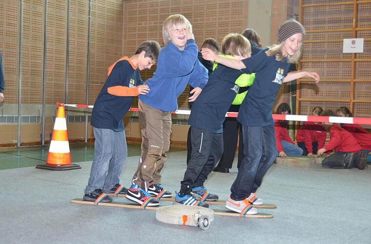 An sieben verschiedenen Stationen mussten die kleinen Feuerwehrler ihr Geschick unter Beweis stellen: beim Ski-Wettlauf, beim Gummistiefelweitwurf, beim Quiz, beim Malen, Puzzeln und beim Golf.