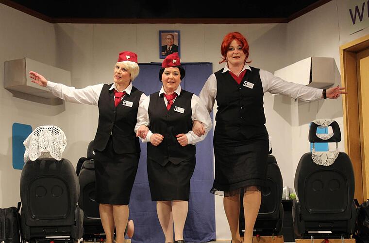 Mit einer Symbiose aus Comedy und Musical, vom Autor Enrique Keil kurzerhand als "Comedycal" bezeichnet, verhinderten die drei Flugbegleiterinnen Babette (Inge Hirschmann), Jeanette (Yvonne Linz) und Raclette (Claudia Nieter) von der Laienspielgruppe "Die lustigen Laien" in dem Zweiakter "Willkommen an Bord" ein völliges Desaster. Es war für die Zuschauer ein Genuss, zuzuschauen, wie die drei Darstellerinnen mit den unmöglichsten Abenteuern in der Luft fertig werden.