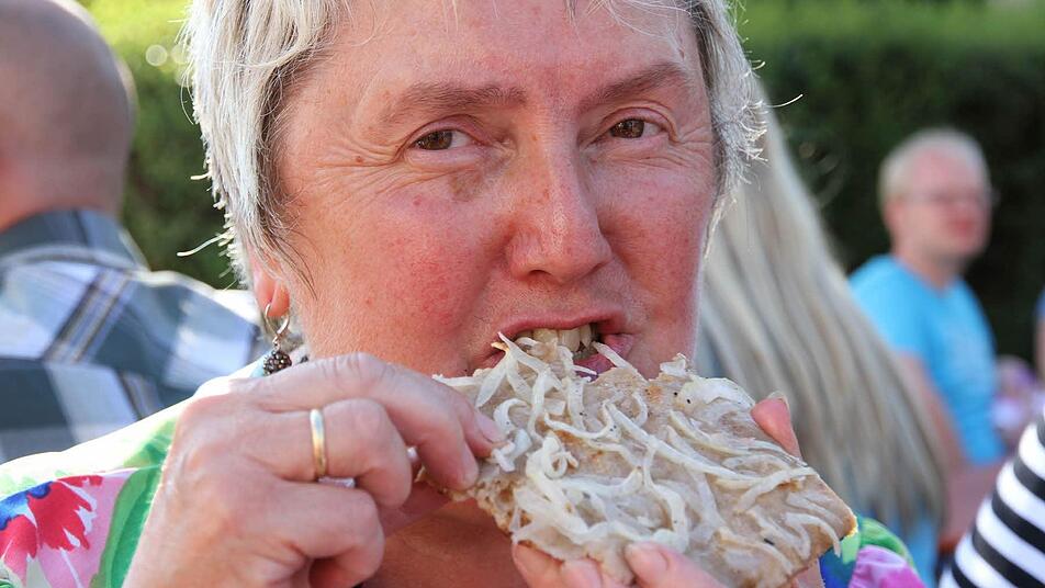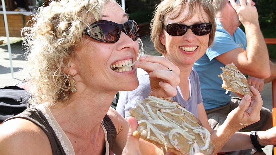 Von den vielen Gästen bekommen Maria Stähr, Gabriele Steinheimer, Brigitte Saffer und Gertrud Dennerlein derweil nichts mit. Sie arbeiten im Akkord. Teig kneten, ausrollen, mit Zwiebeln bestücken. Und dann ab damit in den Ofen.