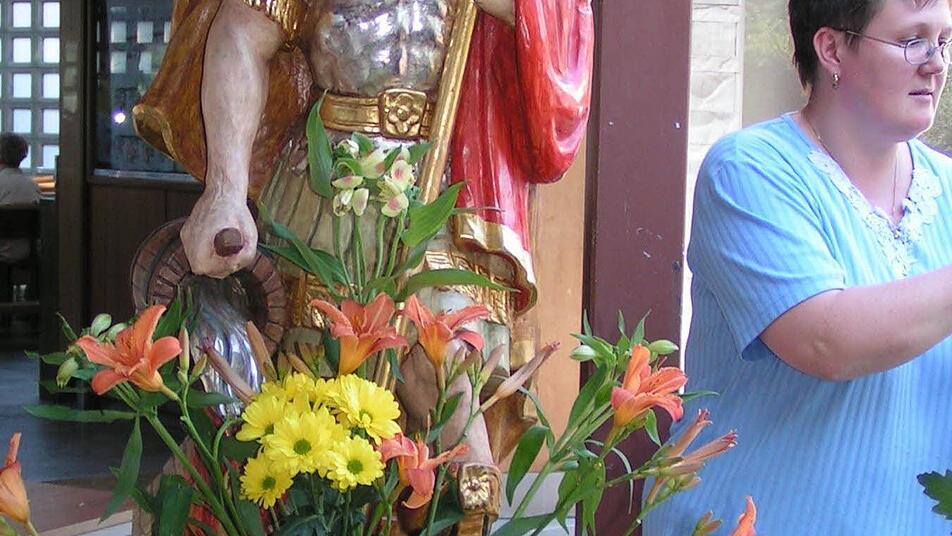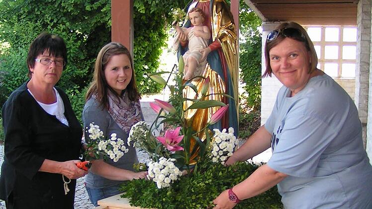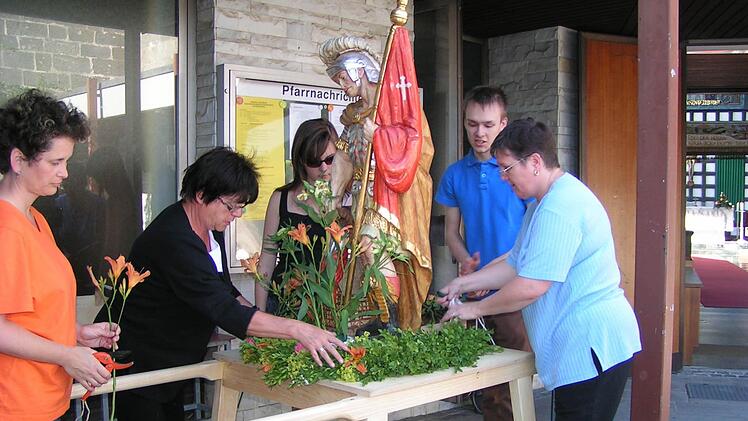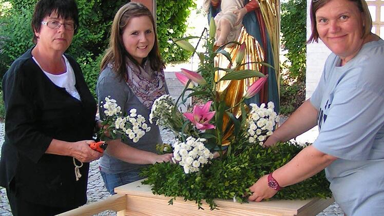 Seit über drei Jahrzehnten schmücken die Frauen des Weilersbacher Trachtenvereins die Figuren für Fronleichnam. Die nächste Prozession steht in dem Ort schon unmittelbar bevor. Sie geht zurück auf ein Gelöbnis um das Jahr 1900.