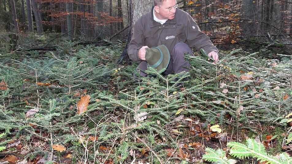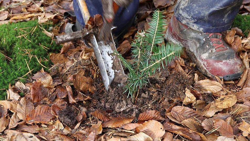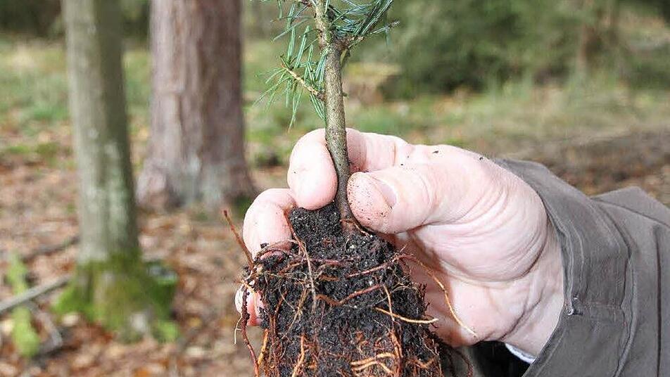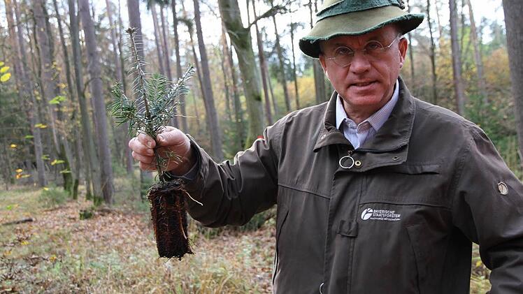 Dafür ist im von Erich Daum betreuten Waldgebiet Forstwirt Gerold Schmidt zuständig. Er hat jahrzehntelange Erfahrung und weiß, wo er den Spaten ansetzen muss, damit die zarten Pflänzchen sprießen. Jetzt ist er jeden Tag mit seinem Spezial-Spaten unterwegs. 5000 Weißtannen-Pflanzen lassen die Bayerischen Staatsforsten in diesem Herbst in der "Unteren Mark" einpflanzen, denn die Pfahlwurzler sind wichtig im Mischwald. Sie sind tief im Boden verankert und können auch großen Stürmen standhalten, wo hingegen die Bäume in einem reinen Fichtenwald aufgrund der flachen, bodennahen Wurzeln wie Dominosteine umfallen würden. Etwa 10 000 Euro kostet die Maßnahme.