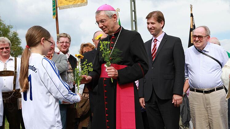 Vorbeter Alfons Nützel gab den Startschuss, nachdem eine Junioren- Mannschaft der heimischen DJK Hallerndorf den Erzbischof mit Blumen begrüßt hatte.