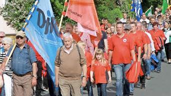 Erstmals wurde die Wallfahrt gemeinsam mit dem Bayerischen Landessportverband (BLSV) veranstaltet. Unter dem Motto "Eintritt für alle" gingen die Wallfahrer begleitet von den Klängen der Aischtaler Musikanten den Anstieg zum Kreuzberg an.