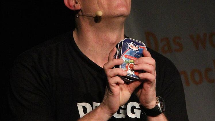 Auch mit seinen musikalischen Eigenkompositionen trieb die fränkische Mischung aus Hofnarr und Spaßvogel den Gästen in der Zehentscheune die Lachtränen in die Augen. Zum Abschluss erhielt der Comedian - passend zum Song von der Fleischerei-Fachverkäuferin - "eine Scheibe Gelbwurst".