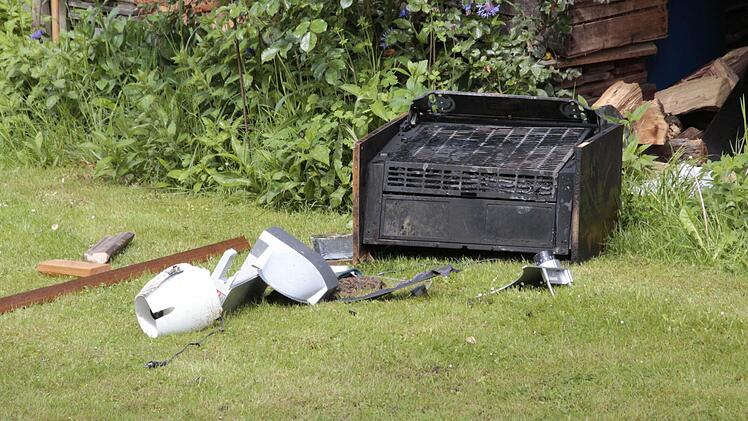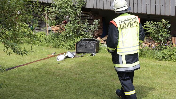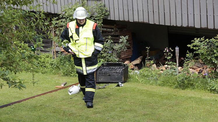 Mit dem Stichwort "Kellerbrand, Person in Gefahr" rückten rund 40 Ehrenamtliche der Freiwilligen Feuerwehren aus Pretzfeld, Kirchehrenbach und Ebermannstadt aus. Vier Atemschutzgeräteträger aus Kirchehrenbach löschten den Kleinbrand mit der Kübelspritze ab und deponierten die völlig verkohlte Dunstabzugshaube im Garten.