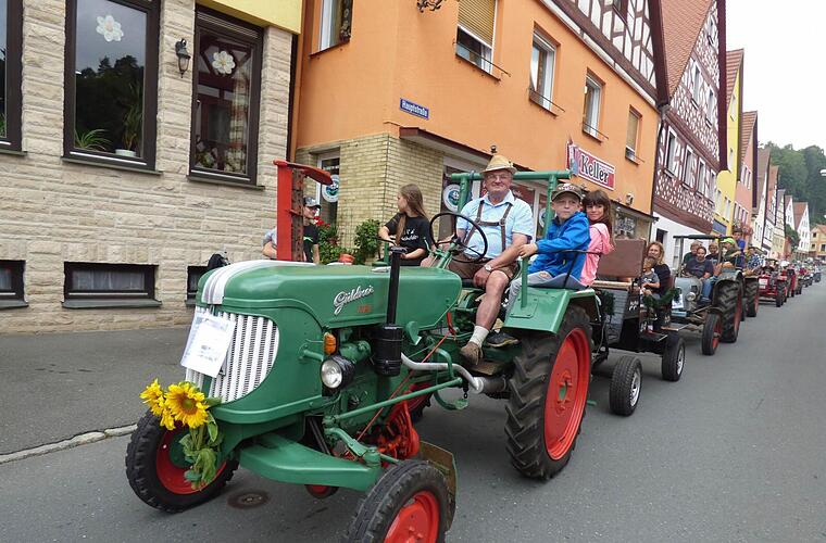 Waischenfeld. 192 Liebhaber historischer Fahrzeuge kamen am Sonntag bei strahlendem Sonnenschein mit ihren betagten Traktoren, Unimogs und anderen historischen Fahrzeugen zum Gastenfest der Schützengesellschaft Waischenfeld, um auch an der Rundfahrt durch die Stadt teilzunehmen. Die Organisatoren schätzen das rund 3000 Besucher das Spektakel an den Straßenrändern verfolgten.
