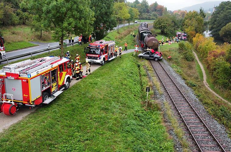 Drei Feuerwehren nahmen an einer ungewöhnlichen Übung im Landkreis Forchheim teil. Die Einsatzkräfte sollten eingeklemmte Personen bei einem Zugunglück retten. Um das Ganze möglichst realistisch zu halten, wurde ihnen das Training zuvor nicht angekündigt.