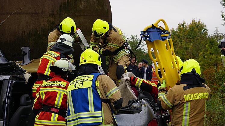 "Ziel der Übung war die Befreiung von eingeklemmten Personen", erklärt Michael Henkel, Kommandant der Feuerwehr Weilersbach, im Gespräch mit inFranken.de. Trotz der Umstände sei der Leitung die Geheimhaltung des Einsatzes gelungen: "Keiner unserer Leute wusste beim Alarm, dass es sich um eine Übung handelt. Somit konnten wir unter realen Bedingungen trainieren."