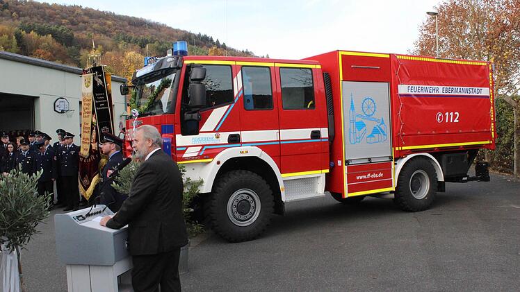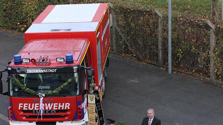 Zum neuen 14 Tonnen schweren und mit 290 PS ausgestatteten Logistikfahrzeug mit seinen Anschaffungskosten von 250 000 Euro erhält die Stadt Ebermannstadt eine staatliche Förderung von 59 000 Euro und vom Kreis noch einmal 40 000 Euro. Das Fahrzeug ist - ebenso wie seine beiden baugleichen, jetzt in Forchheim und Neunkirchen am Brand stationierten Schwesterfahrzeuge - unter anderem mit 2000 Meter Schläuchen, einer Hochwasserausrüstung und einer in Rollcontainern untergebrachten Ausrüstung für Ölunfälle bestückt.