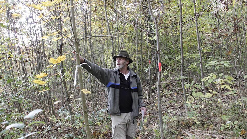 Gelangt nämlich zu viel Licht auf den Boden, wachsen die Bäume zu schnell, setzen zu viele Äste an und entwerten sich selbst, erklärte Erwin Bittermann. Gibt es zu lange keine Pflegemaßnahmen, spricht der Forstexperte von einem Bestand, der "davongelaufen" ist. "Da ist im Hinblick auf eine Wertsteigerung des Waldes kaum noch etwas zu machen", bedauert Förster Bittermann, der mit Nachdruck auf die Bedeutung der "dienenden Baumarten" verweist, die den Wuchs des Wertholzes sichern.