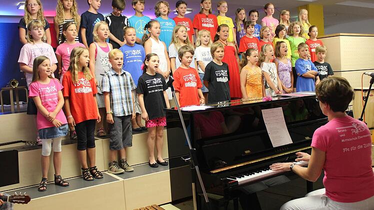 Den Auftakt beim Ebermannstadter Sommerkonzert bestritt der Grundschulchor unter der Leitung von Miriam Sümmerer. Im Anschluss gaben die Schüler das Lied "Wir singen Lieder" zum Besten, in dem Instrumentalisten gemeinsam mit den Chorsängern musizierten.