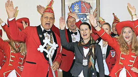 Damit nicht genug: "Frau Meyer, bitte schreiten Sie zur Tat. So wünschen wir's, der Elferrat. Halten's den Schlüssel der Stadt bereit für die fünf Jahreszeit."
