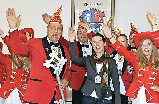 Die bunten Uniformen und die ausgelassene Stimmung lassen keinen Zweifel zu: In Ebermannstadt hat die fünfte Jahreszeit begonnen. Bürgermeisterin Christiane Meyer schickt sich in das Unvermeidliche.