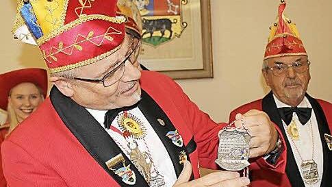 Nachdem der silberne Stadtschlüssel dann bis zum Faschingsdienstag den Besitzer gewechselt hatte, stellte der Ehrenpräsident Gerhard Fickert den neuen Elferrats-Orden vor. Den hat er selbst gestaltet, wie dies Fickert seit dem Jahr 1996 tut.