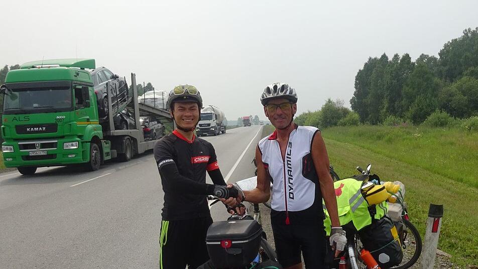 Begeistert war der Radler von den Hügeln um Krasnojarsk herum und der fast einen Kilometer langen Eisenbahnbrücke über den Jenissei. Sie war für die transsibirische Eisenbahn errichtet worden. Auf dieser Strecke traf er auch japanische Tourenradler, die von Tokio nach Helsinki unterwegs waren. Von Krasnojarsk machte sich der Ebermannstadter weiter auf Richtung Irkutsk und den Baikalsee. Doch auch hier erwartete ihn eine Überraschung.