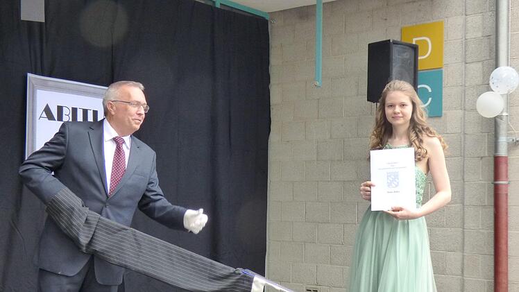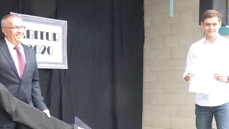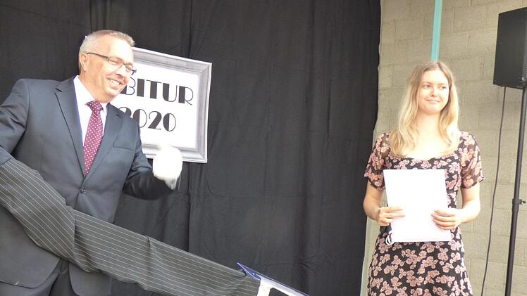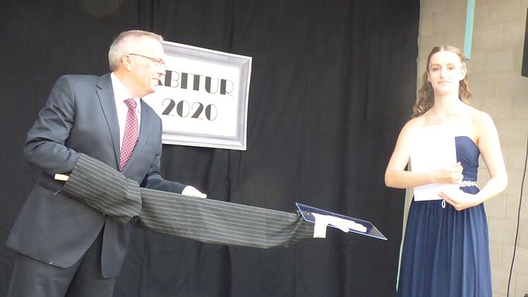 Einen Händedruck, wie in normalen Zeiten üblich, gab es ebenso wenig wie die Teilnahme der politischen Prominenz und die Grußworte der Elternbeiratsvorsitzenden Katrin Hofmann und Nina Behr vom Förderverein des Gymnasiums. Ob CSU-Landtagsabgeordneter Michael Hofmann, Landrat Hermann Ulm, Bürgermeisterin Christiane Meyer oder der bayerische Umweltminister Thorsten Glauber - sie alle gratulierten schriftlich, die Grußworte wurden dann verlesen. Die ungewöhnliche Feier dauerte nur etwas länger als eine Stunde.