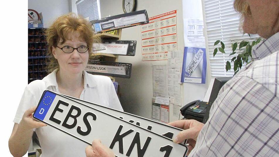 Vor fast einem Jahr hatte er sich das Kennzeichen reservieren lassen. "An Weihnachten habe ich noch einmal angerufen, damit die Reservierung verlängert wird", informiert Dütsch. Paul Gräser, der gerade ein Fahrzeug zulassen will, fragt nach den Ziffern, die es mit den Kennbuchstaben EBS und den Initialen IP gibt. Noch ist die Auswahl groß. Der Interessent will Rücksprache mit seiner Frau halten, was ihr am besten gefällt.
