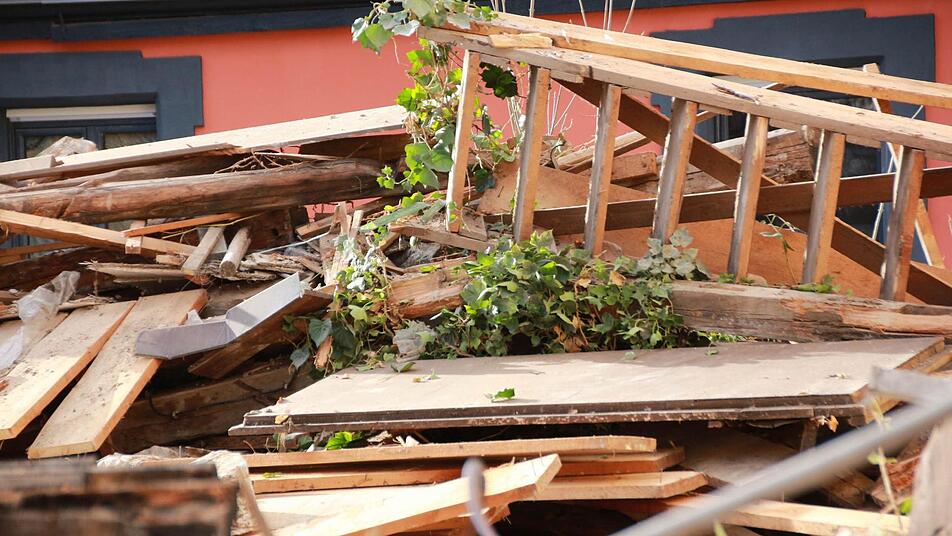 "Da es ein Fachwerkhaus ist, gehe ich davon aus, dass der Großteil Holz ist", erklärt Dotterweich. Etwa 30 Container schätzt der Firmenchef aus Geiselwind, wobei ein Container rund 35 Kubikmeter fasst. Den Bauschutt veranschlagt der Unternehmer auf 600 Kubikmeter. "Das sind dann auch so um die 30 Container, die weggefahren werden müssen", schätzt der Abbruch-Unternehmer. Unliebsame Überraschungen gibt es nicht. Alles, was nach Sondermüll ausgesehen hat, wurde vorher entfernt.