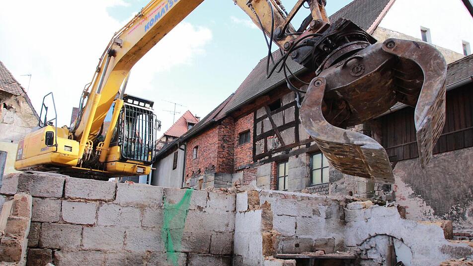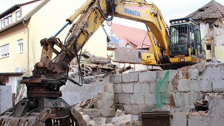 Der Anbau des aus dem 18. Jahrhundert stammenden Hauses in der Bamberger Straße 13 ist nur noch Schutt. Nächste Woche fällt das ehemalige Möbelhaus Müller. "Vorher muss aber noch die Gasleitung abgeklemmt werden", informiert Fritz Dotterweich, Chef des beauftragten Abbruchunternehmens. Seit einer Woche sind seine Mitarbeiter am Werk. Das Abbruchmaterial wird getrennt nach Holz und Bauschutt.