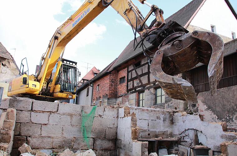 Wegen der beengten Platzverhältnisse werden die Gebäude sukzessive abgetragen. Das Material wird sortiert und getrennt. Danach werden Holz und Bauschutt abtransportiert. "Ab Ende nächster Woche können wir damit beginnen", meint Dotterweich, der drei Mann für die Baustelle abgeordnet hat.