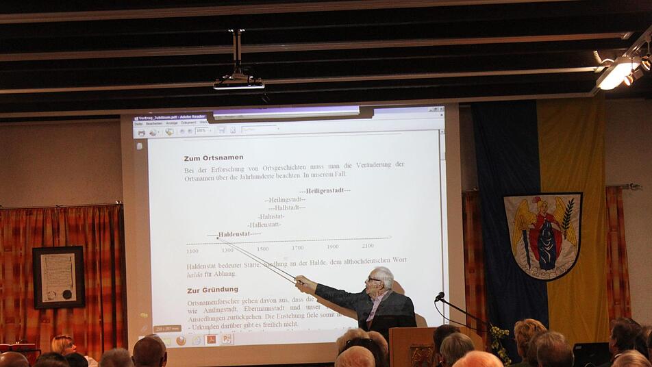 Unerwartet war das Geschenk von Heidrun Piwernetz, denn sie informierte das Gremium, dass sich die Kofinanzierung des Freistaats Bayern für den Breitbandausbau verdoppeln werde. Das bedeutet für Heiligenstaat zusätzliche Mittel in Höhe von 900.000 Euro. Günther Denzler schwärmte von der wunderbaren Lage der Marktgemeinde Heiligenstadt und gab zu, dass er oft "die hervorragende Gastronomie" genieße. Der Heimatpfleger des Bezirks, Günter Dippold, meinte in seinem Vortrag, dass die Nürnberger 1503 Heiligenstadt als "ain gros dorf" bezeichneten und trug vor: "Aber es war mehr. Es war Sitz einer ausgedehnten Pfarrei, und es hatte in seiner gewerblichen Struktur Bedeutung fürs Umland." Das Publikum war begeistert von seinem Vortrag, der vom Streit der Ritter von Streitberg handelte oder den zusätzlichen Schutzgeldern, die jüdische Bewohner zu entrichten hatten. Am Ende genossen die geladenen Gäste ein Buffet und tauschten sich aus.