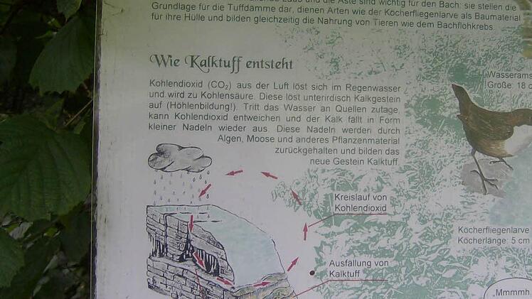 Chemische Reaktionen Damit dieses Naturschauspiel überhaupt entstehen kann, müssen viele örtliche Gegebenheiten aufeinandertreffen. Neben dem Niederschlag, der auf diesen kalkhaltigen Boden fällt und chemische Reaktionen auslöst, bedarf es der Moose sowie in und um den Stufen lebenden Kleingetiers, um das Phänomen zu bilden. Seltene Pflanzen wie das Moschus- oder Milzkraut wachsen am Quelllauf, der seit 1995 Teil der Schutzzone "Naturpark Fränkische Schweiz Veldensteiner Forst" ist.