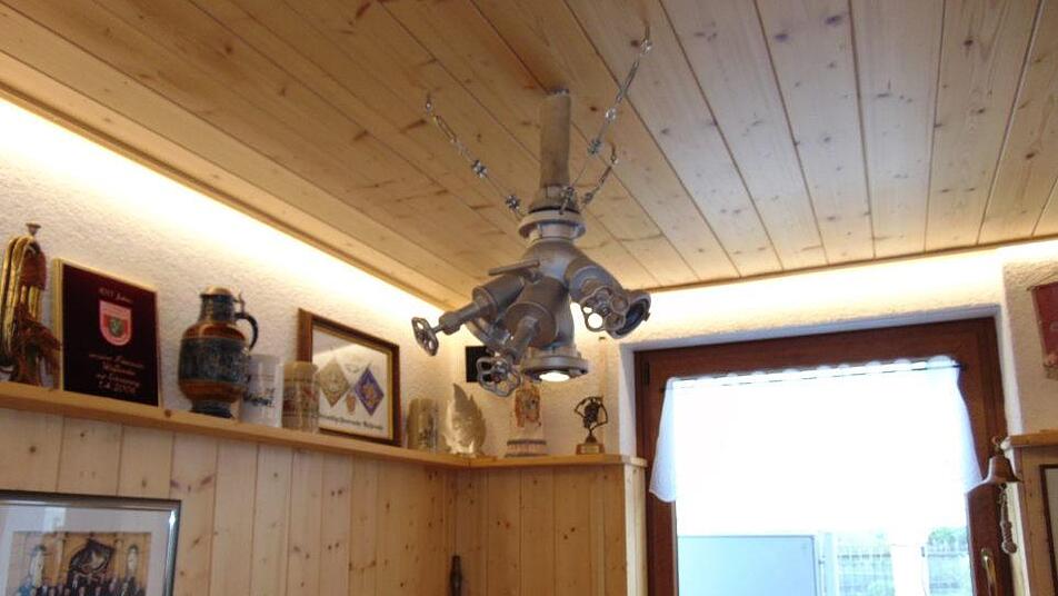 Dort wo einst Bürgermeister Rudolf Brauns Kanzlei war, stehen nun Tische und Bänke in dem neuen Schulungsraum der Feuerwehrleute. "Sie haben alles in Eigenleistung geschafft", sagte Rudolf Braun nicht ohne Stolz über die kreative und gelungene Renovierung des alten Rathauses, an dem Lampen in Form eines Hydranten oder in Gestalt von Schlauchanschlüssen von der Decke baumeln.