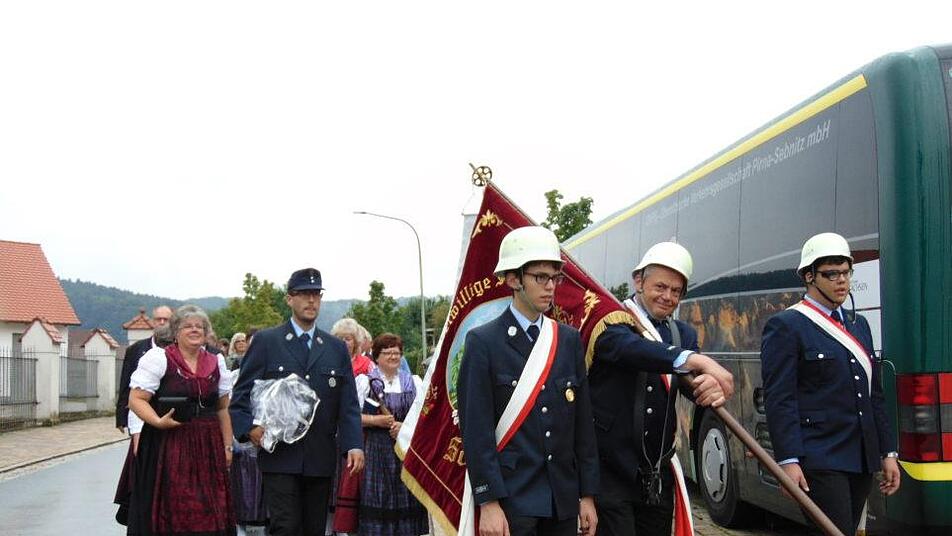 Weißenohe. Dort feierte die Weißenoher Feuerwehr ihren 140. Geburtstag, der mit einem Festzug in die Kirche und von dort aus ins Festzelt eingeläutet wurde. Mit dabei die Weißnoher Vereine, aber auch die Nachbarwehren Sollenberg und Lilling und die Feuerwehr aus der Gemeinde Dohma, zur der seit der Gebietsreform in der Sächsischen Schweiz die Gemeinde Cotta gehört.