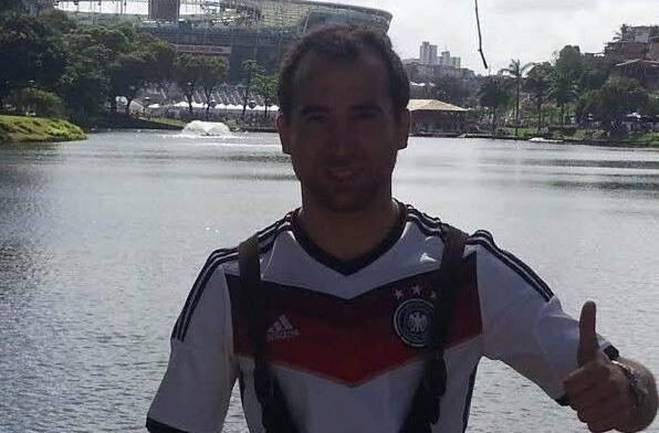 Einen Teil seines Jahresurlaubs verbringt er ganz im Zeichen seiner sportlichen Leidenschaft. Vorbereitet hat er sich auf diese besondere Reise schon länger, wie eine kleine Anekdote beweist: "Als ich wieder mal ins Taxi einstieg, musste ich keine zwei Wörter in den Mund nehmen, bis mich der Fahrer als ,alemanha' identifizierte. Auf mein ,por que?' antwortete er mit ,accente', was so viel wie Akzent oder Betonung heißt. Daraufhin sind wir ins Gespräch gekommen und ich konnte zum ersten Mal meine rudimentären Portugiesisch-Kenntnisse testen. Immerhin war es nicht umsonst, ein Jahr mit einem Sprachprogramm die Landessprache des Gastgebers zu pauken. Bevor ich ausstieg, offenbarte er mir seine Favoriten: Brasilien, Spanien Argentinien und Deutschland - die üblichen Verdächtigen."