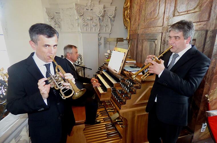Mit den beiden hochklassigen Trompetern Johannes Trunk und Wolfgang Dautel sowie mit Gößweinsteins Organist und Regionalkantor Georg Schäffner wurde das Konzert zu einem Ohrenschmaus für Liebhaber klassischer Musik. Den Anfangs- und Schlusspunkt des Konzerts bildeten zwei Concerto des wohl bedeutendsten Klosterkomponisten des 18. Jahrhunderts, Pater Valentin Rathgeber.