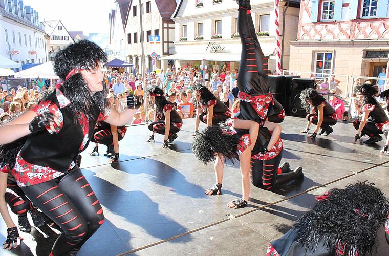 Wie immer stand das Festpodium am Inneren Markt im Mittelpunkt des Publikumsinteresses, wo akrobatische wie tänzerische und auch sportlichen Darbietungen am laufenden Band zu sehen waren. Aber auch Bürgermeister Heinz Richter (FWG) hatte da beim Anstich des ersten Fasses Festbier seinen Auftritt, als er das dreitägige Fest der Neunkirchner eröffnete.