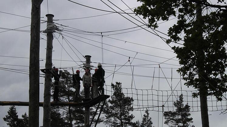 Der Hochseilparcours auf Burg Feuerstein hat für Sabine Grüner durchaus auch eine pädagogische Dimension. Gruppen würden hier immer von mindestens zwei Trainern betreut werden. Vorneweg würden Ziele und Motivation besprochen, danach reflektierten die Teilnehmer nochmals selbst ihre Beweggründe. "Deshalb ist die Ausbildung unserer Trainer und deren Weiterbildung auch sehr wichtig für uns", sagt Sabine Grüner.