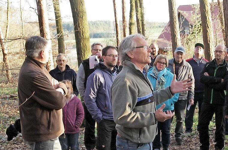 "Die ehemaligen Schafweiden wurden nicht mehr benötigt, die Baumwolle hielt Einzug in die Region. Die Bauern forsteten mit Kiefern auf, die allerdings den heutigen Klimabedingungen nicht standhalten können", so Jessen. Für ihn gibt es nur eine Lösung: den Waldumbau. Hin zum klimatoleranten Mischwald. "Es ist nicht mehr fünf vor zwölf, es ist zwölf", verdeutlichte er den dringenden Handlungsbedarf. Die in der WBV Kreuzberg organisierten Waldbauern sind dabei Vorreiter in der Region. Im letzten Jahr wurden rund 30 Hektar Wald umgebaut. "Handeln Sie, solange noch Kieferkronen den Boden beschatten. Pflanzen sie am besten im Herbst und dann gilt es zu hoffen, dass kein Trockenjahr kommt", verdeutlichte er den Teilnehmern die für ihn seinen Augen einzige Möglichkeit.